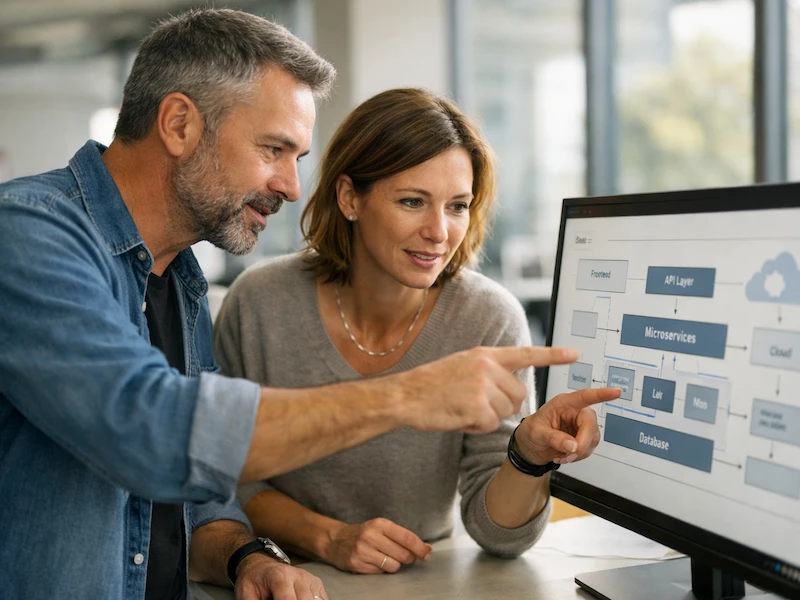 Diseño del sistema, selección de stack y una hoja de ruta que revisas antes de que escribamos una sola línea de código.