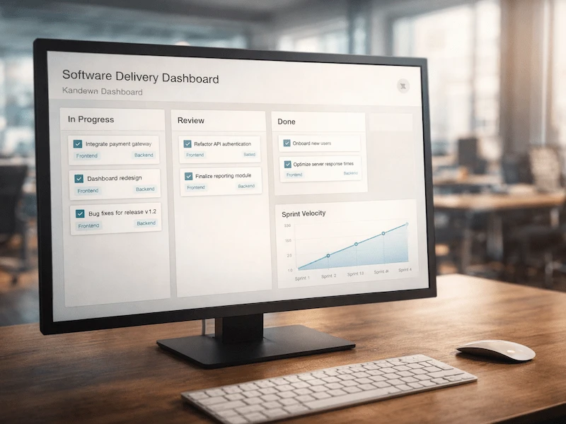 Entrega iterativa con transparencia total. Ves el progreso cada sprint, con actualizaciones en tus herramientas antes de cada llamada. Entregamos cuando está listo — sin atajos, sin sorpresas de alcance.